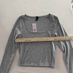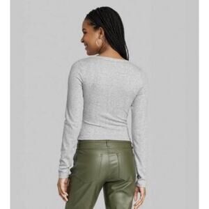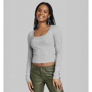 Wild Fable Women's L Large Shirt Gray Long Sleeve Pointelle T-Shirt New
