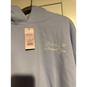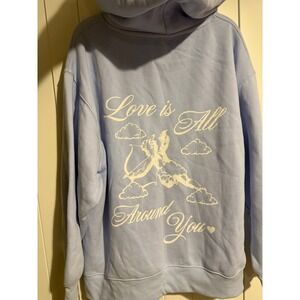Wild Fable Womens Light Blue Hoodie Love is All Around You Cupid Print Size L