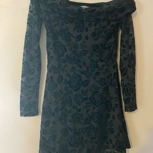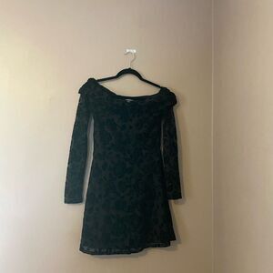 Wild Fable Women's Long Sleeve Flocked Mini Fit and Flare Dress Black