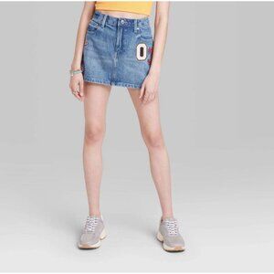 Wild Fable Women's Low-Rise Denim Mini Skirt Medium Wash Patches 4