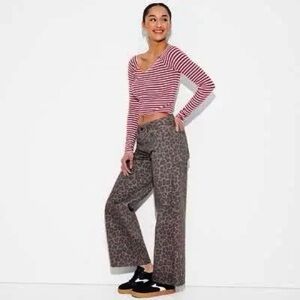 Wild Fable Women's Low-Rise Wide Leg Baggy Jeans Leopard Print