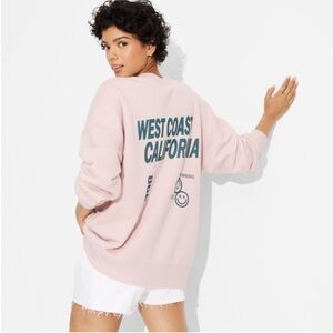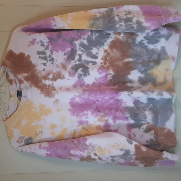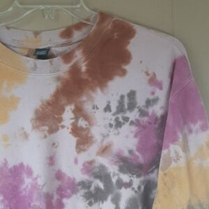 Wild Fable Women's M multicolor tie-dye sweat shirt. Features a mix of pink, orange, brown, and gray tones. Soft fleece lined. Laying flat pit to pit is 27 inches. Shoulder to bottom of ribbed waistline is 26 inches. From neckline to the end of the sleeve is 29 inches. New without tag. Excellent Condition.