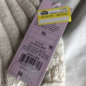 Elevate your work wardrobe with this stylish Wild Fable Women's Open Work Sweater Tank Top. The sleeveless design and V-neckline make it perfect for layering, while the adjustable straps ensure a comfortable fit. The off-white color and solid pattern add a touch of sophistication, and the pullover closure makes it easy to wear. Crafted from a blend of polyester and cotton, this knit sweater is machine washable for easy care. The XL size and regular size type make it suitable for women of all shapes and sizes. With its unique accents and features, this sweater is perfect for casual occasions, both at work and outside of work.