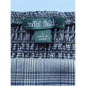 This stylish Wild Fable women's cropped tank top features a gray plaid pattern and adjustable straps. Crafted for comfort with a blend of rayon, recycled polyester, and spandex, this piece is perfect for adding sophistication to casual looks. Designed in a size large with smocking detail on the back, it delivers a secure, flattering fit.