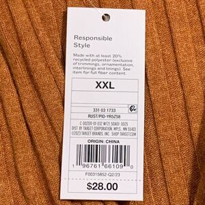 Wild Fable Womens Size XXL Full Zip Front Cardigan Sweater Rust Ribbed NWT