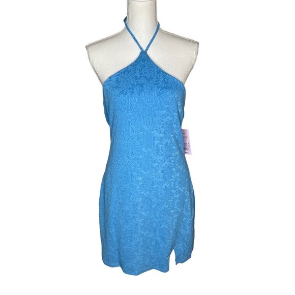 Wild Fable Women's Sleeveless Side Slit Bodycon Mini Dress Large Azure B…