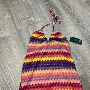 Brand new Wild Fable women's striped multicolor lined crochet slip dress with side slit, tie at the neck and on the back - size large.