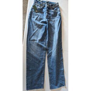 Wild Fable Womens Super-High Rise Rhinestone Straight Jeans Medium Wash Size 2
