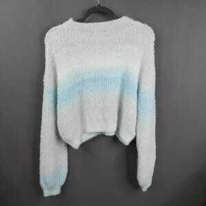 Wild Fable Womens Sweater Large Aqua Soft Cozy Eyelash Boxy Cropped Softgirl
