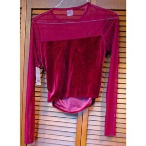 Wild Fable Women's Unitard Burgundy Mesh Bodice Velvet Body Size Medium