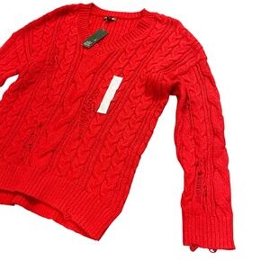 Wild Fable Women's V-Neck Sweater Red Size XL Chunky Knit Distressed New NWT