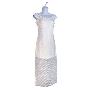 Wild Fable Womens White Sleeveless Lace Textured Maxi Slip Dress Size Large