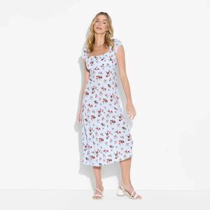 Wild Fable Women's XL Flutter Cap Sleeve Maxi A-Line Dress Light Blue Floral NWT