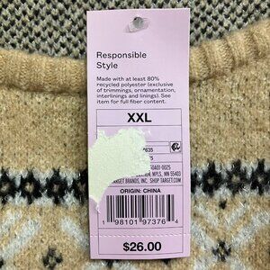 Wild Fable Fair Isle sweater XXL, beige cropped pullover, Nordic knit sweater women, cozy soft winter top, geometric pattern sweater, ribbed hem crewneck, recycled polyester knit, vintage style sweater, Wild Fable women’s sweater beige, Fair Isle cropped jumper
