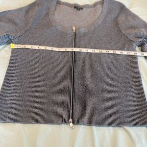 Wild Fable Women's XXL Zip-Front Navy & White Ribbed Cardigan Thick Sweater. Boat neck collar. Lots of stretch. Excellent used condition. Lightly used. No rips, stains or defects. Please see pictures for measurements