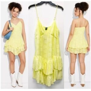 Wild Fable Women's Yellow V-Neck Tiered Mini Skater Dress β Size M, Summerβ