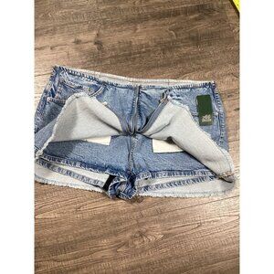 Wild Fable Womens Zip Front Denim Mini Skirt Shorts Light Wash Distressed Hem Xl