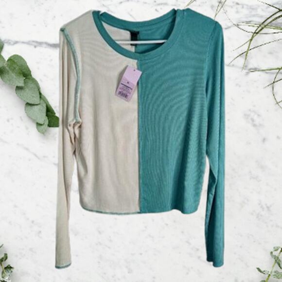 Wild Fable XLG NWT green and ivory rayon blend stretch long sleeve woman's top.