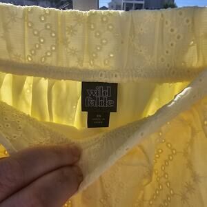 Brighten up your look with this Wild Fable mini skirt in size XS. This light yellow high-waisted skirt features delicate cotton eyelet fabric with full lining underneath for comfort. Perfect for summer, festivals, and casual outings.