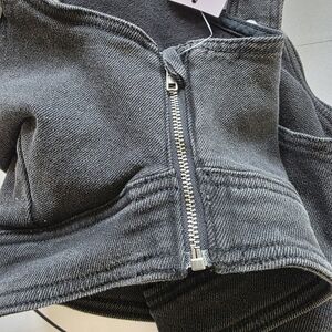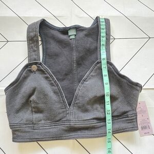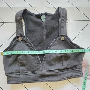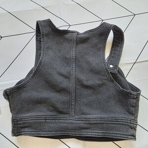 Stylish gray denim crop top with button details. Perfect for casual wear.