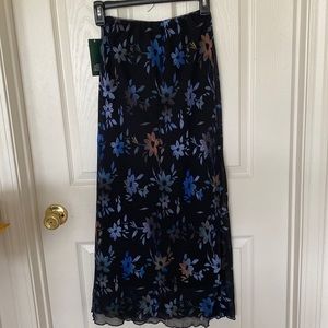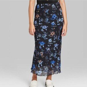 “Wild Fable” black floral lined, pull on skirt; size XS; NWT