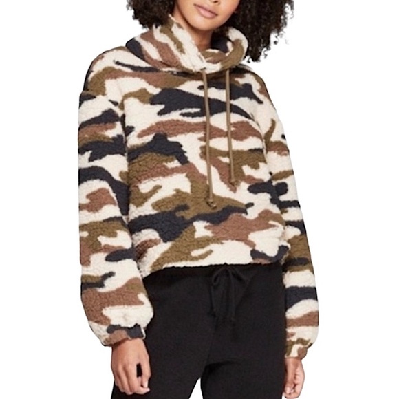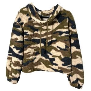 Wild Fable camo fleece cropped drawstring sweatshirt l