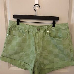 Wild Fable green checkered highest rise mom shorts cuffed bottom size 16