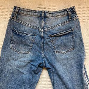 features five functional pockets, a raw-hem cropped fit, and the perfect worn-in feel while still maintaining quality denim thickness. also the zippers are functional and zip/unzip to the thigh, if you're going for that look (?).