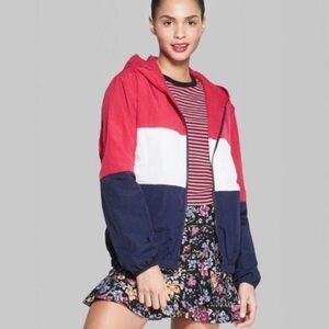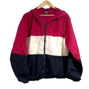 Wild Fable jacket lined windbreaker 2x pink blue & white gently worn colorblock