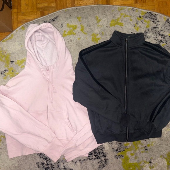Sleek dark gray jacket by Wild Fable. Perfect for casual outings. Pink cropped zip hoodie. Selling together. Both size XXL.