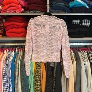 Wild Fable pink lace with sequins long sleeve mock neck top size M NWT
