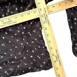 Off-shoulder peasant crop with smocked back and long puff sleeves. Black/pink ditsy floral. Gently used.