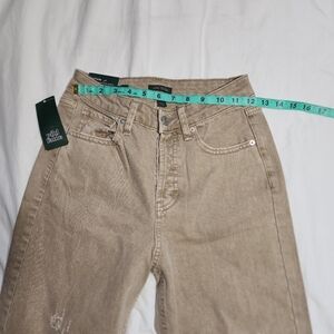 Stylish tan jeans with a distressed look. Perfect for casual wear.