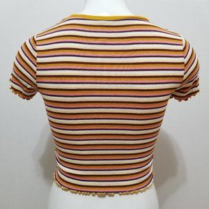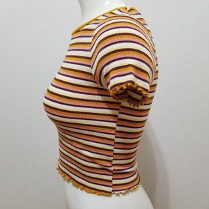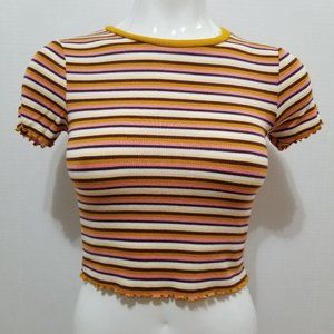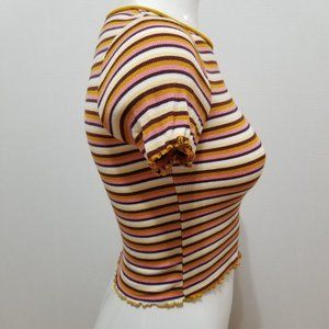 Wild Fable top Small retro striped ribbed knit cropped scalloped lettuce hems