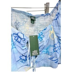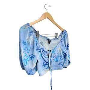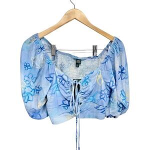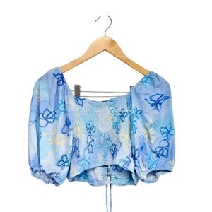Wild Fable Cropped Top Size Small Floral Print Blue Puff Sleeve Shirt Womens