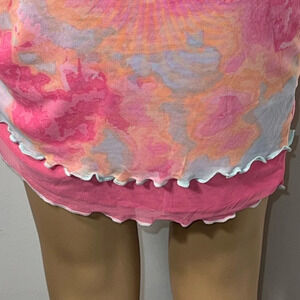 Wild Fable,M,pink /orange tie-dye, water color cinched side drawstring HiLo contrast scalloped hem