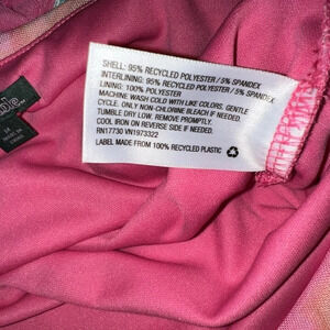 95% recycled polyester, 5% spandex inner lining 95% polyester 5% spandex lining 100% poly made in China