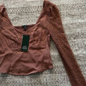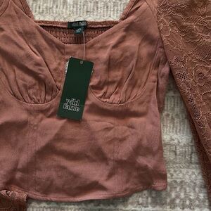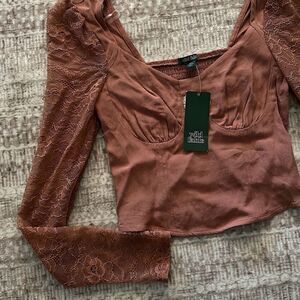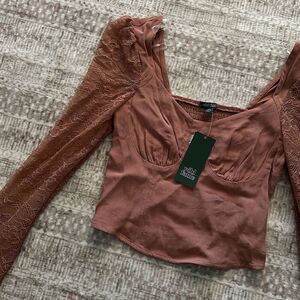 Wild Fable Size XXS brown Blouse lace arms NWT CROPPED
