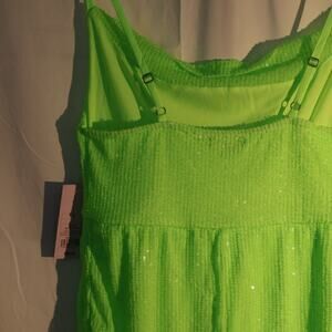 Wild Fables Sea Gream Foam Sparkle Dress Swimsuit Cover Size Large Sleeveless, Camisole bodixe, bodycon skirt, ties up sides. Size Large.