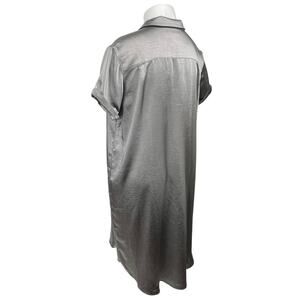 Wild Fang Gray Silver Silk Satin Short Sleeve Button Down Midi Shirt Dress Sz L