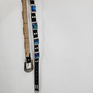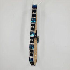 Wild Fire Black Leather Blue Square Gem Rhinestone Studded Western Belt Size XL