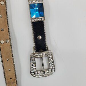 Wild Fire Black Leather Blue Square Gem Rhinestone Studded Western Belt