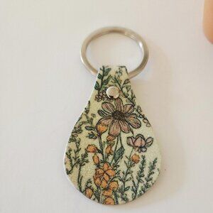 Wild Flowers Faux Leather Glitter Keychain Floral Bag Charm