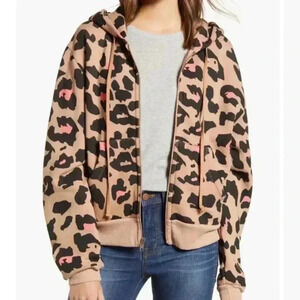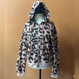 Wild Fox- “ Preppy Kitty Leopard” Print Everyday Zip Up Hooded Sweatshirt