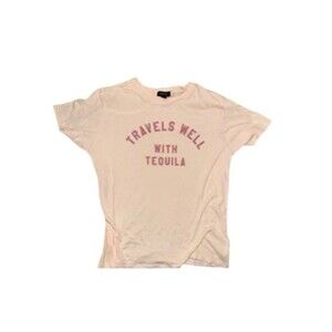 Wild Fox Women’s Graphic Tee Medium Pink Travels Well with Tequila Vacation