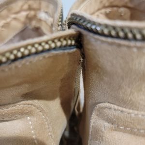 Wild G fringe booties, size 8.5. Suede like (man made) upper. Zipper on inside of boot. Faux zipper on outside of boot.