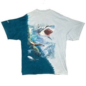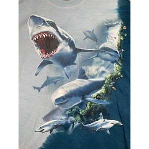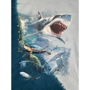 Wild Gear Mote Aquarium All Over Shark Graphic Tee T Shirt Men's XXL Jaws Turtle
