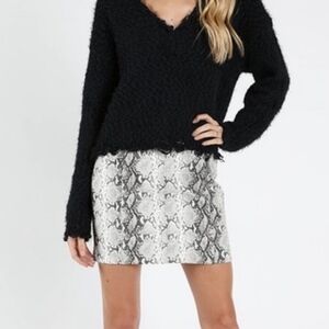 High Waisted Faux Leather Snakeskin Mini Skirt in white, gray and black. Back zipper closure.
