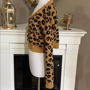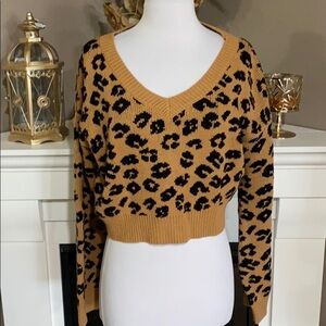 Wild Honey Leopard Print Crop V Neck Sweater