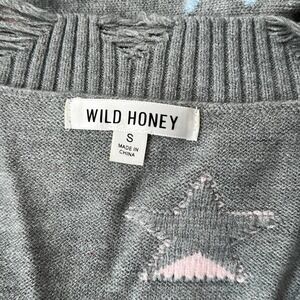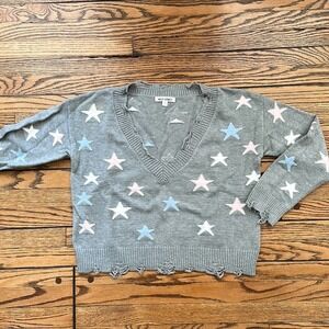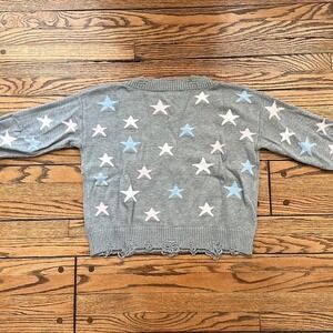 Wild Honey Super cute Cropped Star Distressed Sweater Size S Gray and Pink